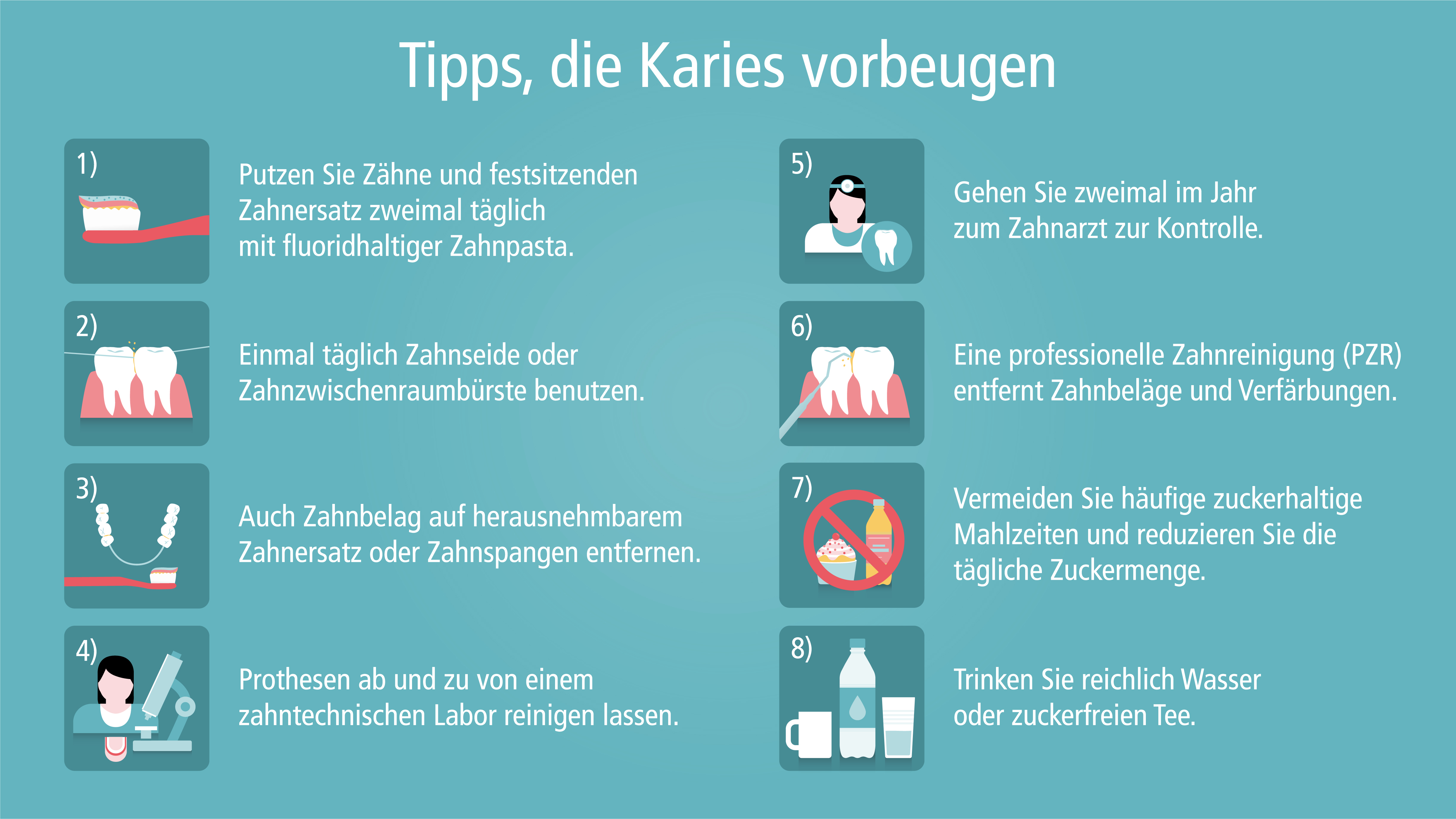Schöne weiße Zähne strahlen Lebensfreude und Energie aus. Weil Zahnbeläge und Zahnverfärbungen nicht nur ein optischer Makel sind, sondern Zahnfleisch- bzw. Knochenschwund verursachen können, bedeutet eine optimale Zahnpflege auch Gesundheit – Prophylaxe für Ihre Zähne!